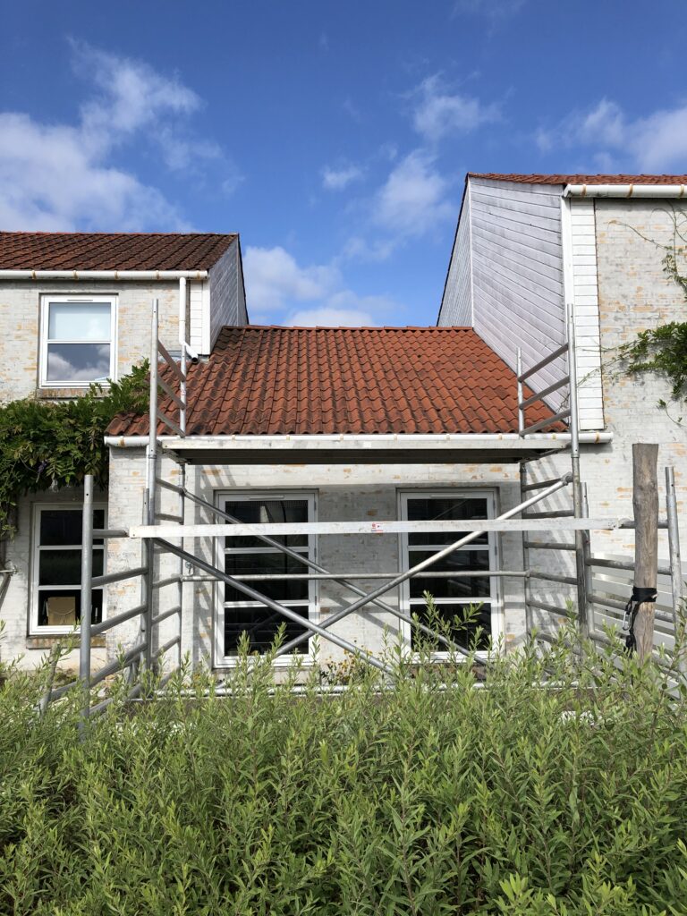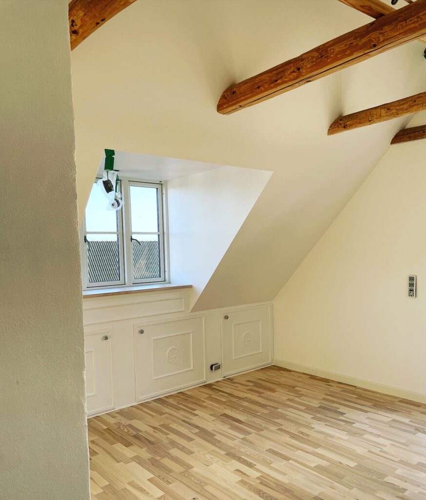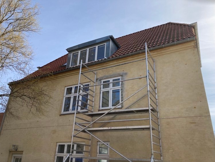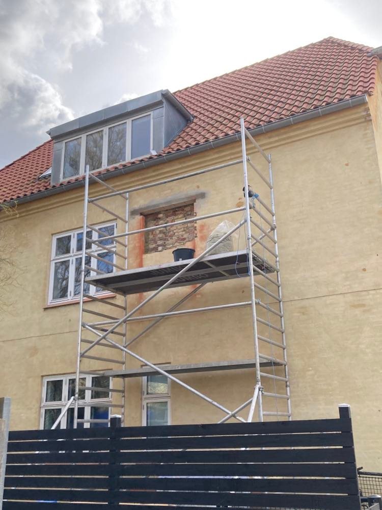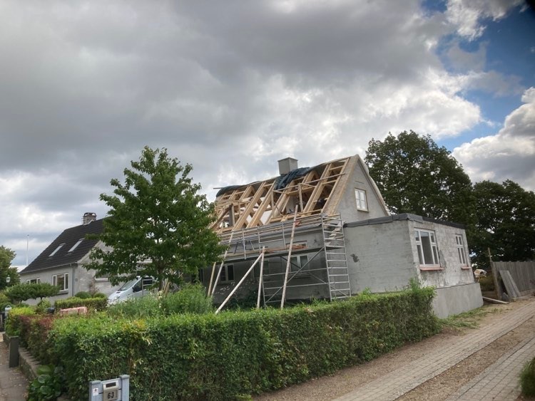 Billeder Vi stort set alle opgaver – små som store. Her er billeder af nogle af de opgaver vi har udført inden for de seneste par år. Nyt tag, nye kviste, samt renovering af 1. salen. Hus i Arnakke før renovering Arbejde i gang med etablering af skunklåger 1. sal færdig. synlige hanebånd, nyt gulv og skunklåger med ornamenter montering af nyt vindue i murstensvæg arbejde i gang billede af tag - før velux er monteret Billede af hus efter montering af Velux
